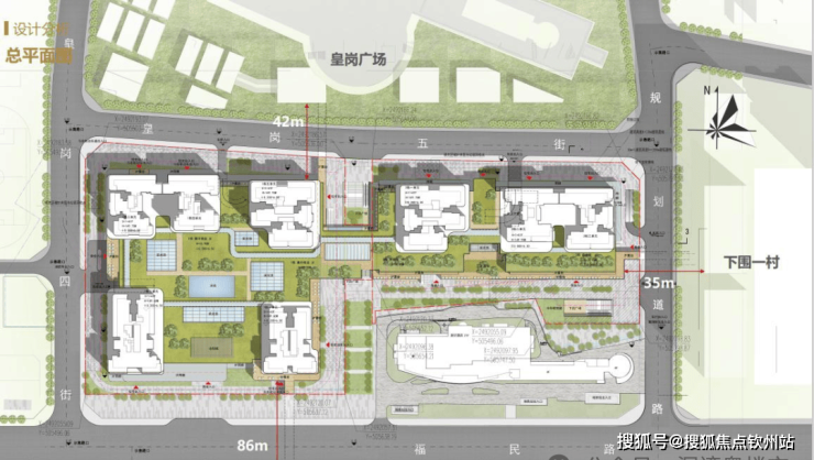 其中一期占地面积为31428.9㎡,计容建筑面积174082.2㎡,容积率5.54,共五个单元塔楼,其中一至四单元为回迁住宅,总面积101500㎡,五单元为一期唯一可售住宅,总建筑面积30807.64㎡,商业41503.6㎡,停车位1266辆。