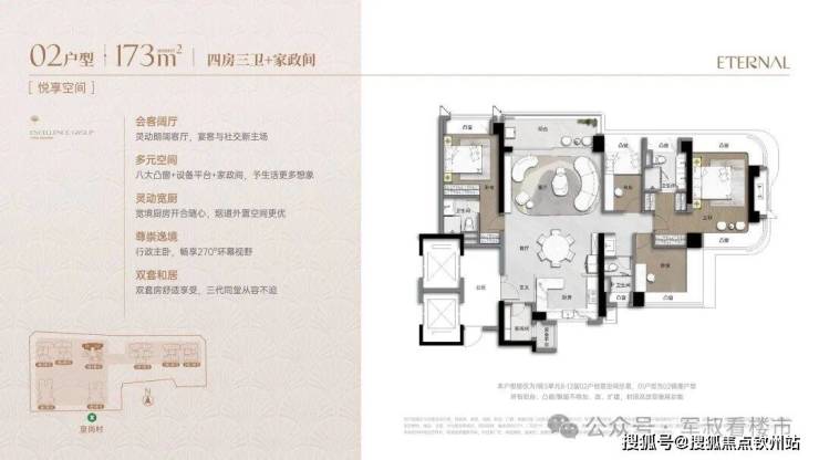 105㎡3+1房、125㎡4房、173㎡4+1房+2厅+3卫,满足多样化家庭需求;