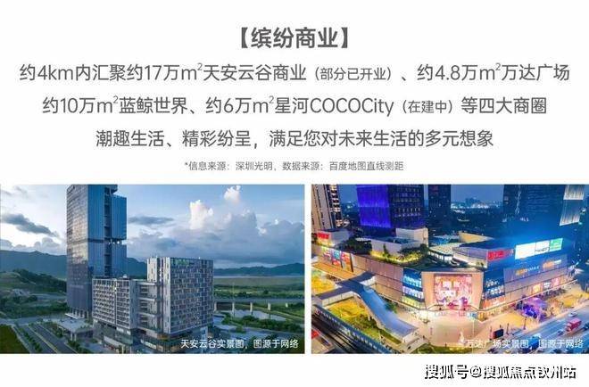 商业配套:项目自带约3500㎡商业,4km内汇聚约17万㎡天安云谷商业(部分已开业)、约4.8万㎡万达广场约10万㎡蓝鲸世界、约6万㎡星河COCOCity(在建中)等四大商圈。