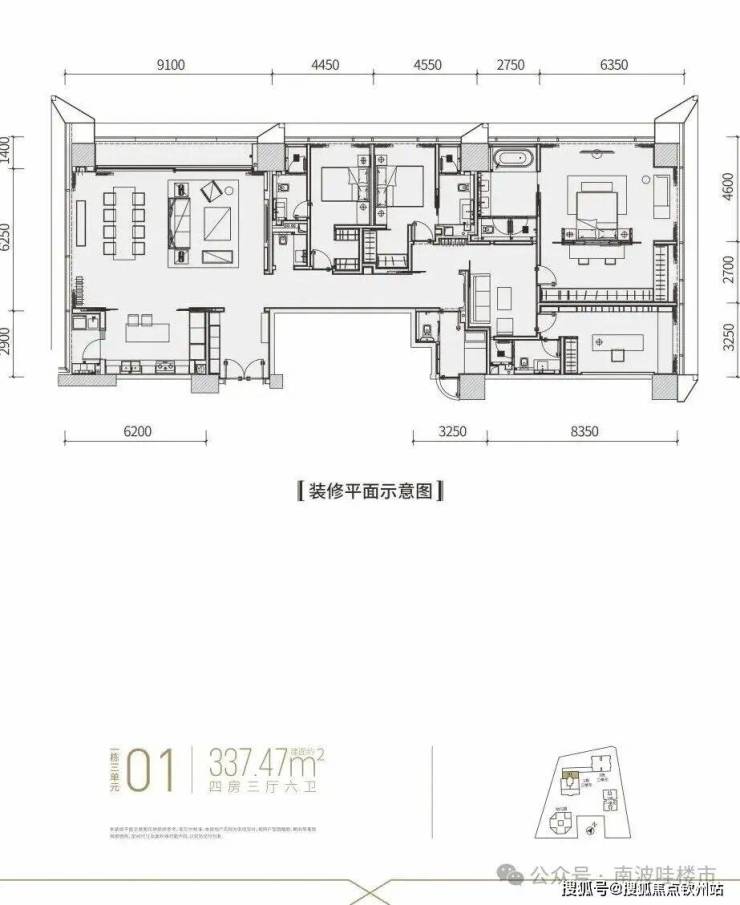 【建面约337平4房全套房+1工人房3厅6卫】