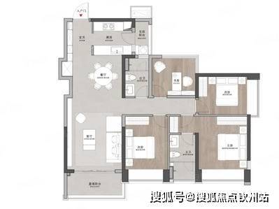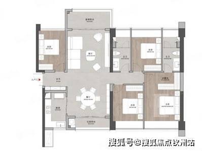 户型设计:户型采用 LDKB 一体化设计,户户朝南,主卧套间设计,阔绰社交厅,宽尺观景阳台,且配有独立玄关,提升隐私性能。