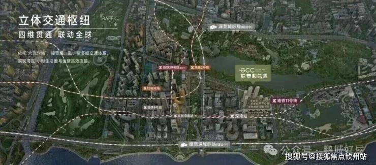 项目为地铁上盖物业,近距接驳2号线红树湾站与9号线深湾站。而深超总片区规划"六轨六站"立体交通网络,包括地铁2、9、11号线,规划中的29号线以及穗莞深、深莞城际轨道。