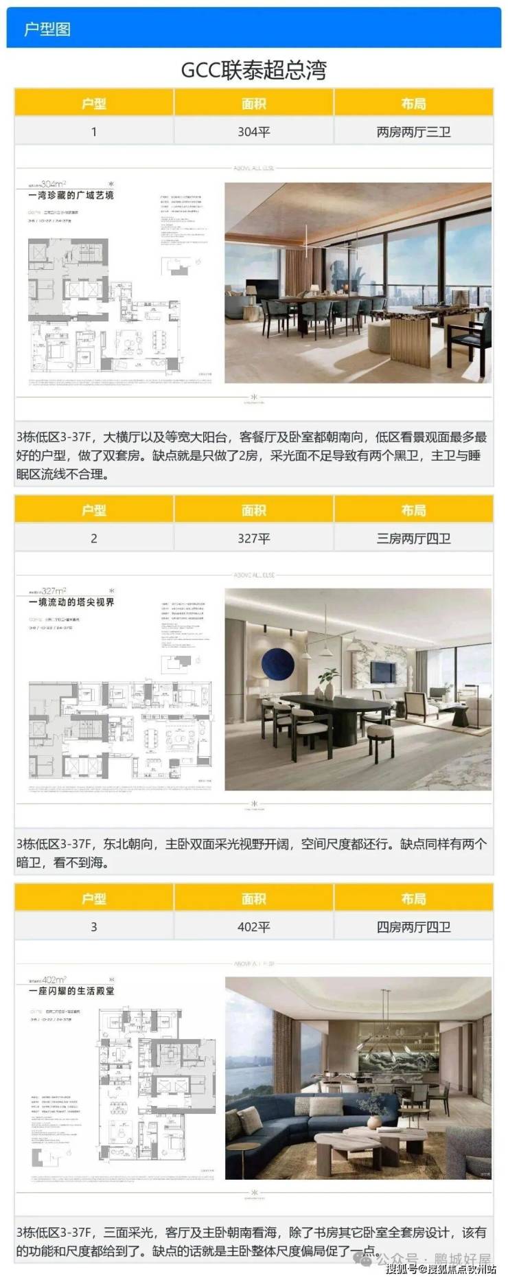 产品设计上,据了解多为面积约300-1000㎡的宽境大平层产品,首批推出T3栋约123户,低区约304-327-402㎡,高区约400-570-1000㎡,层高约3.6-4.5米,均通燃气且配备超大阳台,部分户型采用270°环幕视野设计。