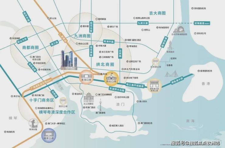 珠海与澳门极点桥头堡,扼守双城风云际会的湾区之内。眼前是前山河的锦绣、澳门城的璀璨,亦是珠海的繁荣,天赋区域,成就珠海CBD坐标级作品。