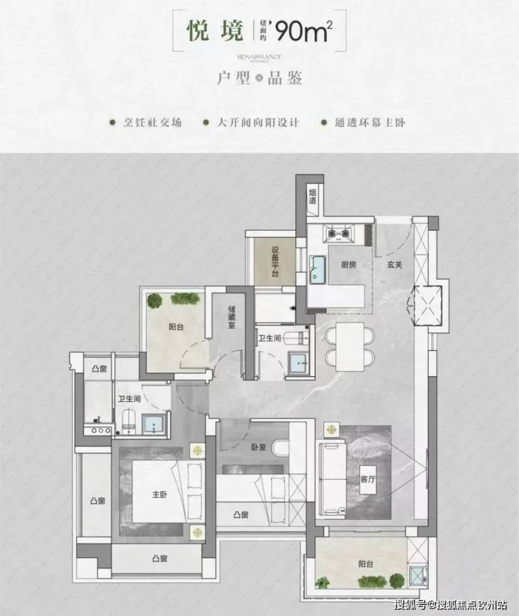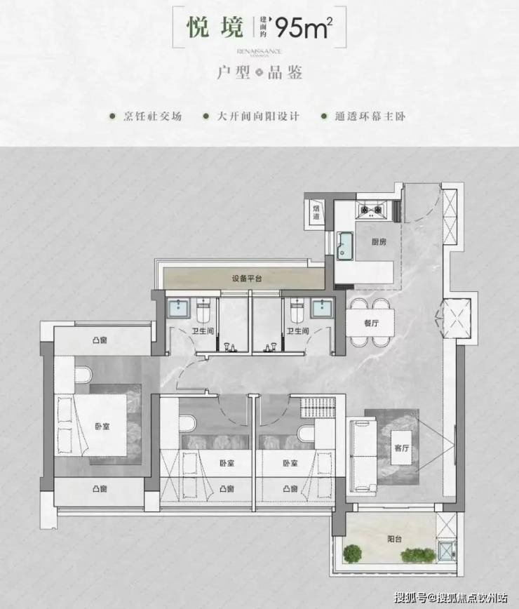 • 得房率:通过创新性的飘窗、双阳台改造、设备平台赠送等设计,实现平均94-96%的惊人得房率。