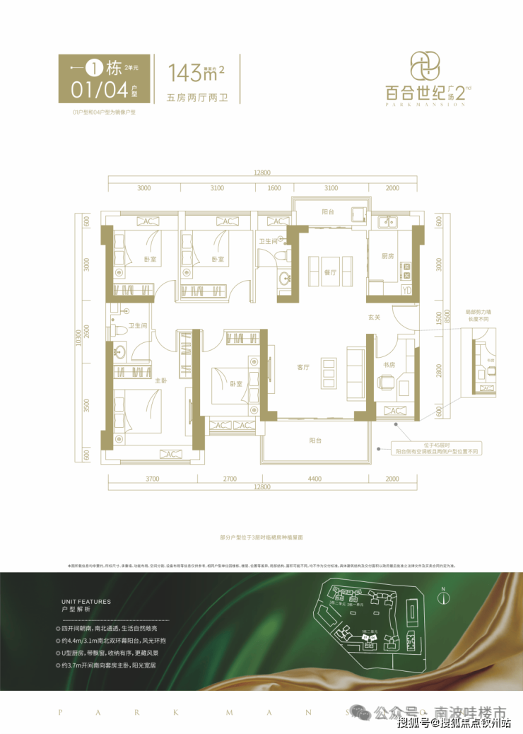 【产品面积】主力产品 建面约 98-143 ㎡ 3-5房(一期 174 ㎡阔绰 5 房热售中)