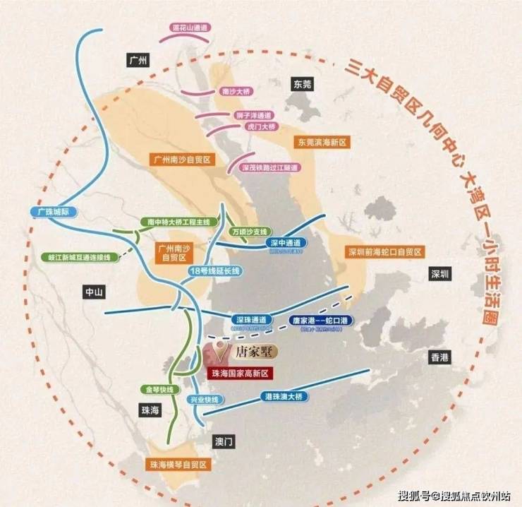 4. 深珠通道接驳处,与深圳前海仅一桥之隔,深中通道、18号轻轨延长线等交通路网,实现珠海横琴自贸区、广州南沙自贸区和深圳前海蛇口自贸区三大自贸区几何中心构建大湾区一小时生活圈
