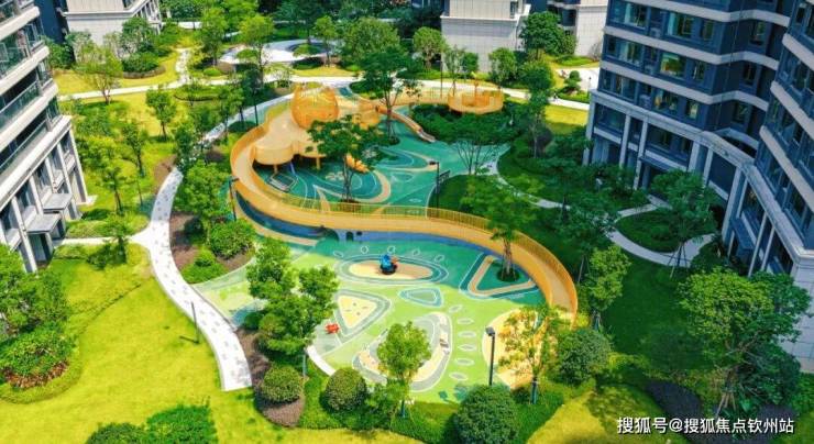儿童乐园已实景落地,彩色滑梯与攀爬架安装完毕,正迎接孩子们的欢笑。