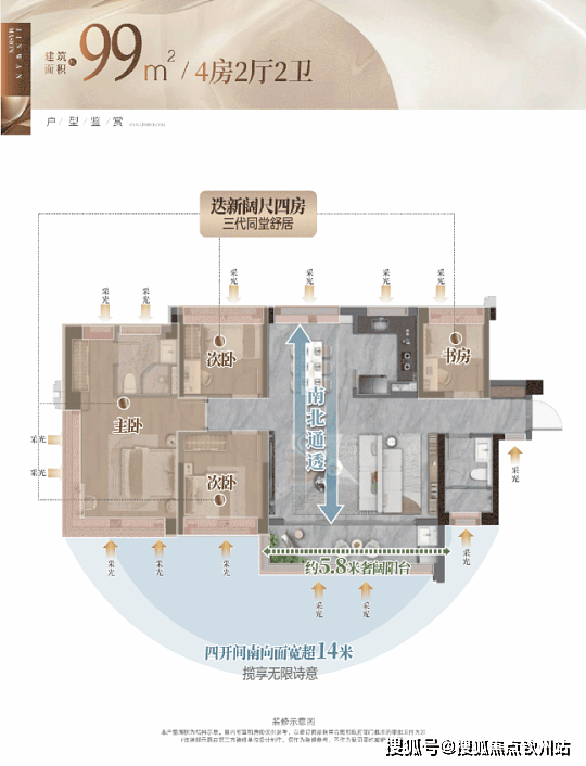 设计特点:户型方正、动静分区、多数户型采用横厅设计、阳台面宽较大。