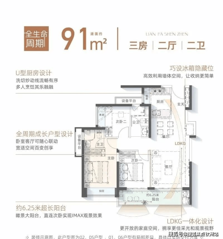 【建面约91㎡3房2厅】
