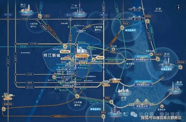 香港:經中江高速、東部外環高速(建設中)、興業快線(建設中)、港珠澳大橋速達香港