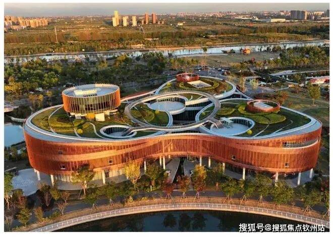 东方大屋檐的建筑形制,加上流线型立面,用铝板、石材、蓝玻,勾勒出当代江南。
