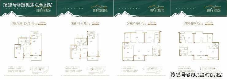 2栋A座约121.58㎡三房两卫(01户型)横厅格局,三面采光,通风效果极好。南向望山,西向望河,北向望湖,三阳台设计。
