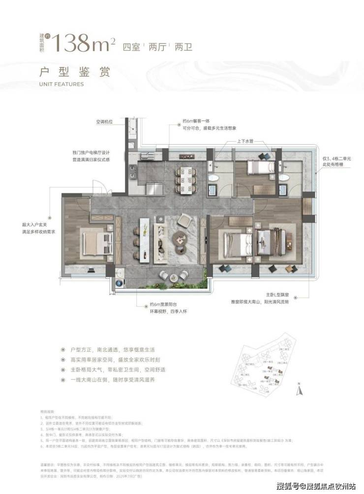占地面积:约4.2万㎡ 建筑面积:约16.3万㎡ 容 积 率:2.75绿 化 率:30%使用年限:70年(2023-2093)总 户 数:共10栋,870户总楼层:17-25层层高:3米梯户比:2梯4户面积:约95-110-113-115-138平使用率:约95%交房时间:2026.12.30(或提前交)停 车 位:1:1.13(987个)物业管理费:6.8元物业公司:远洋物业开 发 商:深圳市远荔实业有限公司