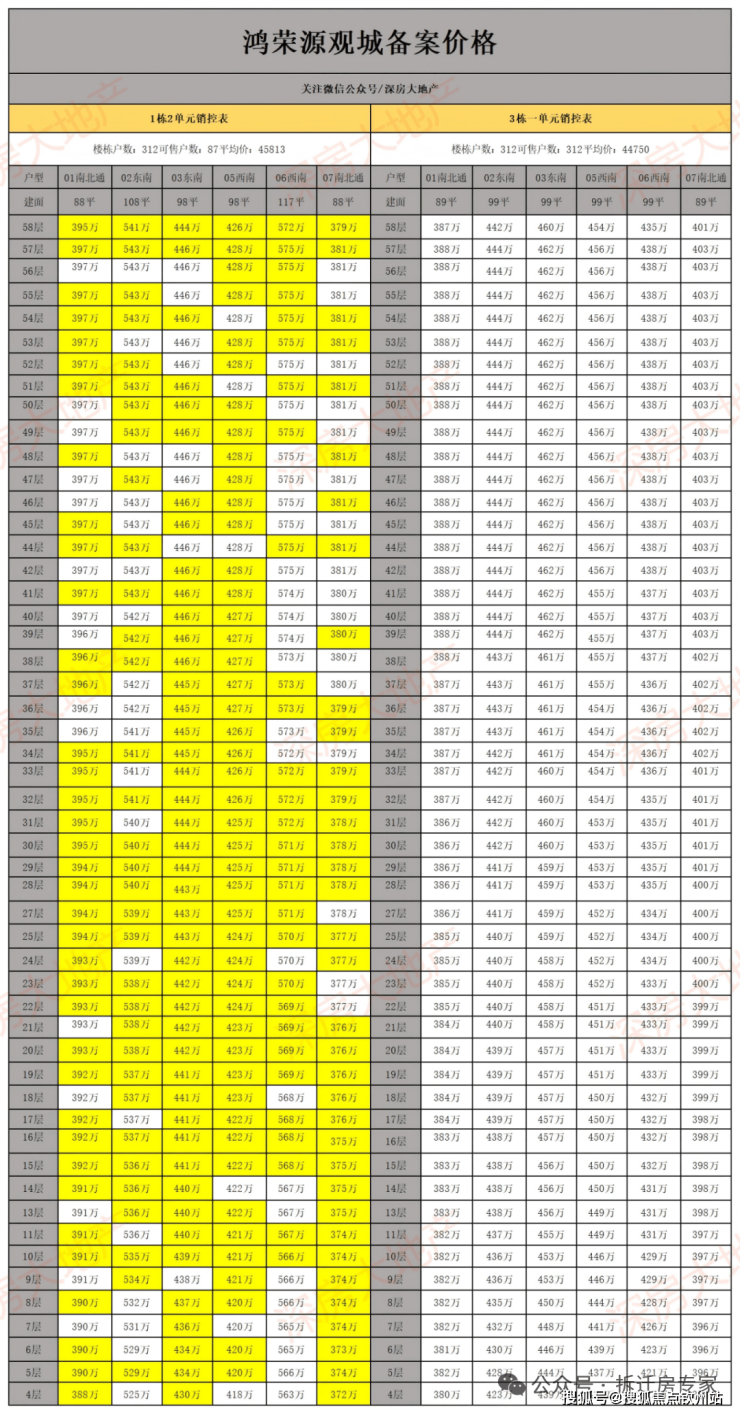 鸿荣源观城,这次推售的3栋1单元是整个小区里面3房户型位置最好的,视野景观最佳,本次开盘依旧是打出了9.03折的折扣优惠,折后均价4.03万/㎡,折后单价3.79-4.21万/㎡,总价在342-417万/套。