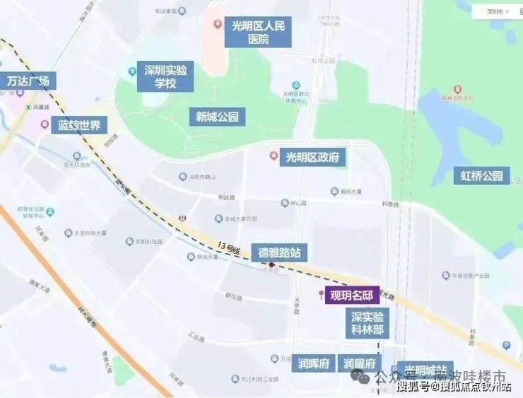 中建观玥名邸位于光明城凤凰街道观光路与光侨路交汇处,是中建八局在深圳开发的首个住宅项目,邻近地铁13号线德雅路站,属于凤凰城片区,光明城站2地铁1高铁联通大湾区区政府、体育馆、文化艺术中心以及万达、蓝鲸世界等商圈均在项目2公里范围内,享受成熟的都市生活圈配套,规划为世界一流科学城和深圳北部中心。