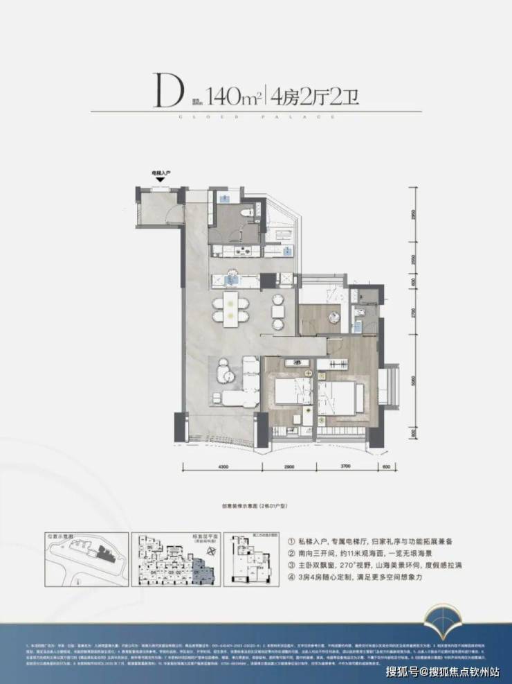 ·产 品:建筑面积约111-140㎡三至四房、270度环幕山海景观