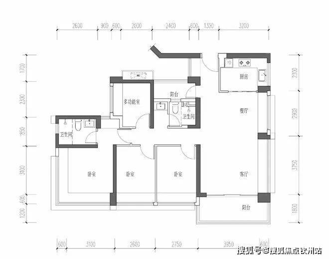 ,设计的是经典竖厅格局,客厅3.2米开间,LDKB一体化,S墙设计预留冰箱卡槽位,三开间朝南,3个卧室分别做到了主卧12.37㎡/次卧9.18㎡/次卧6.76㎡(包含墙体飘窗),U型厨房,卫生间三段式分离,得房率约77%(不含赠送),西南或东南朝向。