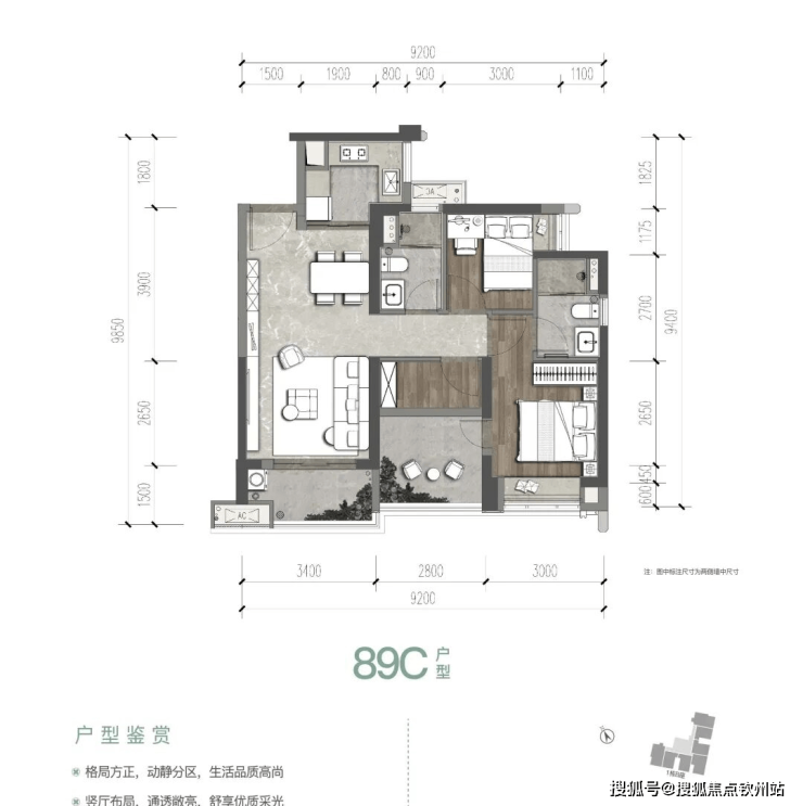 一期89㎡3房2卫,折后总价330-366万/套,单价3.7-4.11万/㎡。