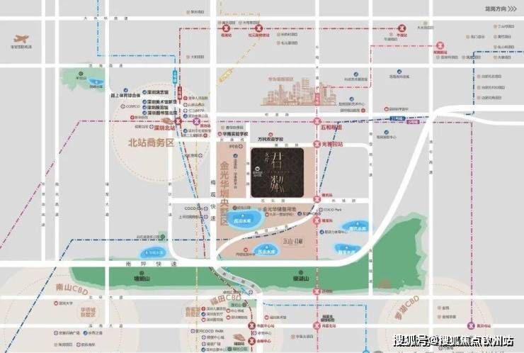①双枢纽(深圳北站+五和站),1小时无缝对接大湾区;五和站城际枢纽,5/10号线及规划中的深大、深惠、深广中轴城际。