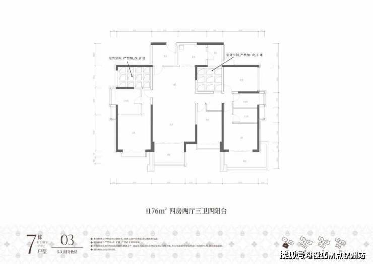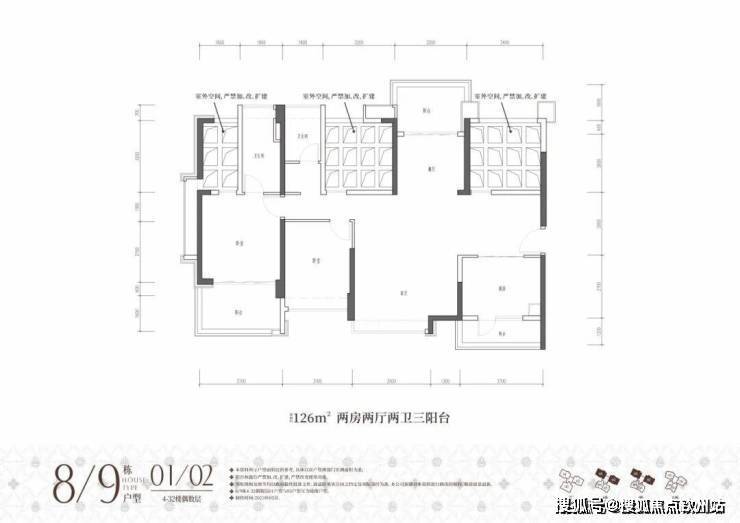 ①高阔奢享:建面约86-176㎡墅境宽宅,改善型大四房,全南向户型天然舒适;两梯三户低梯户比,多阳台露台设计,悦享阔绰居住空间;方正户型结构搭载更多半开放设计,高阔空间实用率与灵活性大幅提升。