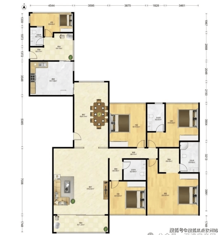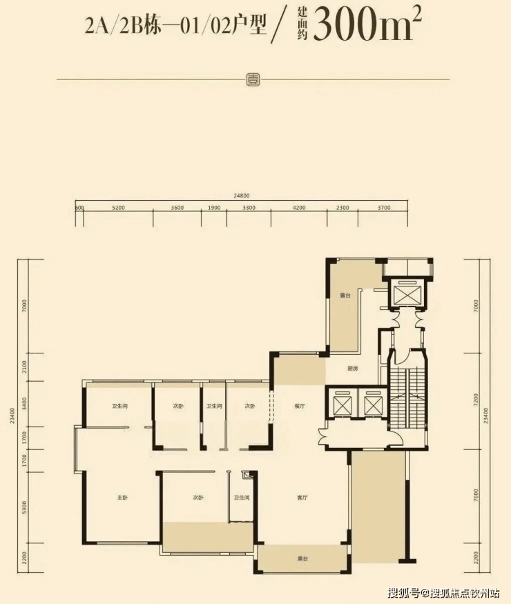 4+1房(3套房),客厅开间达到7.1米,极其稀缺的极奢尺度