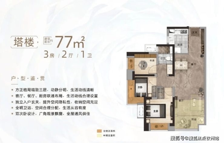 塔楼 约77㎡3房2厅1卫 |