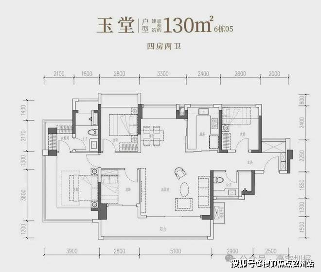 四开间IMAX光幕引景入室,以LDKB家庭聚场升温情感,更以双转角主卧套房,礼献一方休憩殿堂。• 玉堂·建面约130㎡4房2厅2卫:南向四开间,约14.7米IMAX光幕,尺度自成
