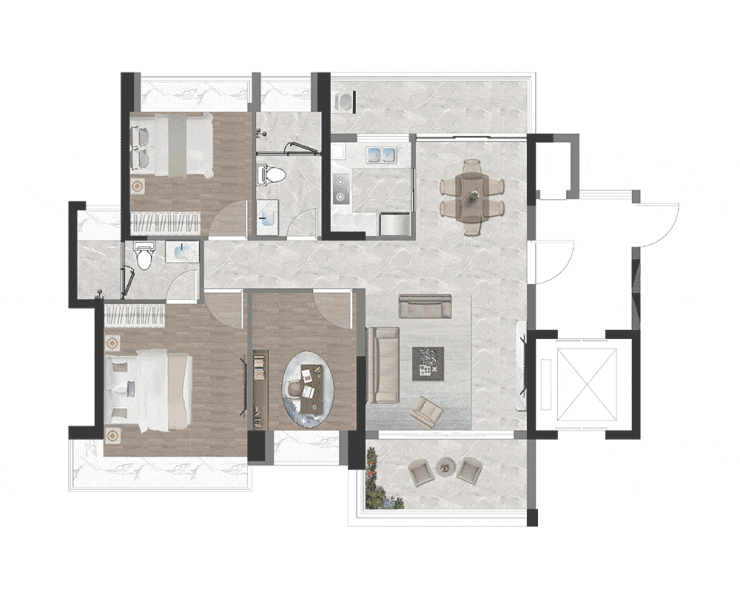 户型三:约120㎡三房两厅两卫