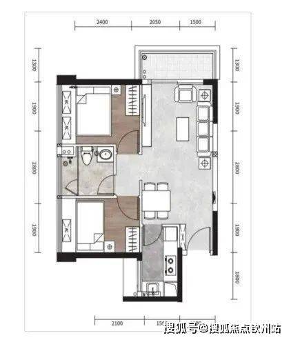64㎡的2房2厅1卫,设计的竖厅格局,进门玄关,客厅3.3米开间,客餐厅一体化,L型厨房,卫生间干湿分离,得房率约73%(包含赠送),仅有几套可售。此户型集中在1B栋,这一栋里面有很多是回迁房,所以可售的不多。