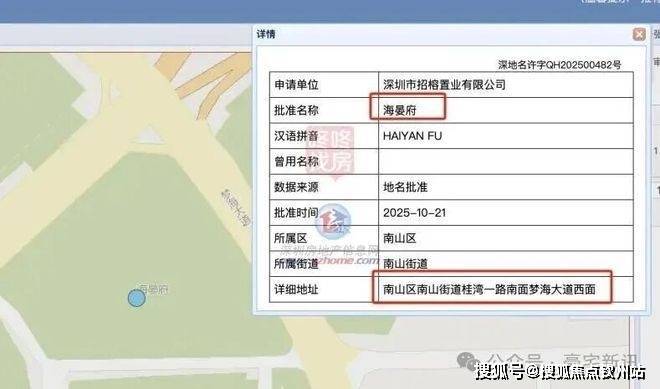 位于前海桂湾的招商地块(宗地号为T201-0232)定名为“海晏府”。