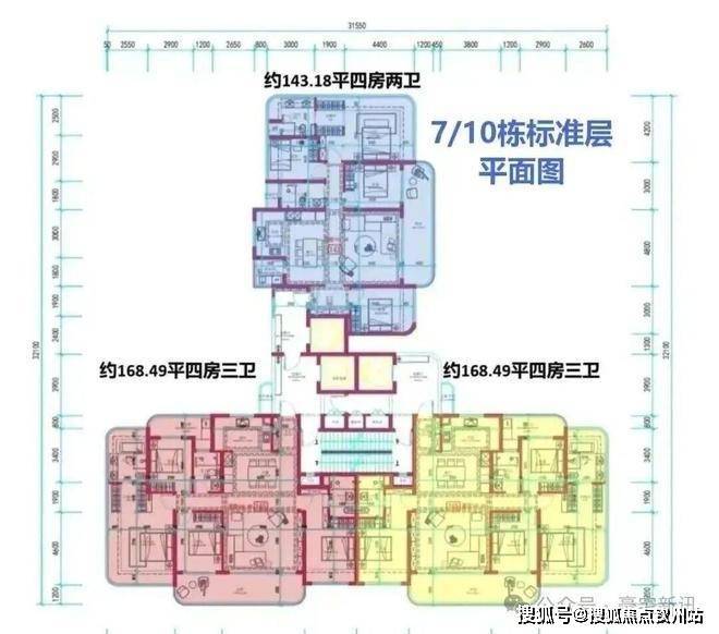 而1、6、7、10、11、12栋采用板楼设计,3T3户,约140-168-190㎡左右4房,也有部分看海单位,上车门槛更低。
