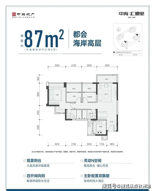 户型:87-99、2-3 室 2 厅 2 卫南向采光,部分瞰澳门海景,主卧套房