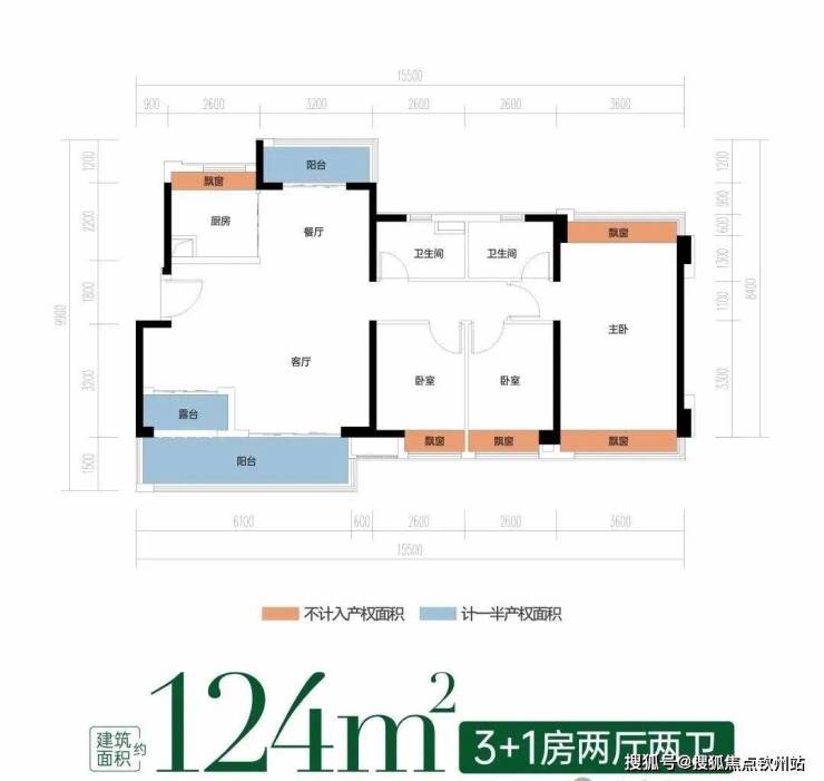 主卧双飘窗+次卧等面宽飘窗,全赠送高拓空间