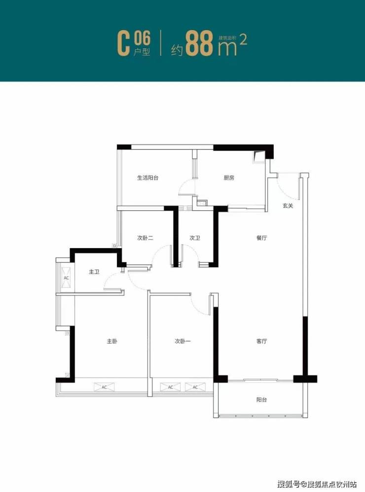 (4)88㎡的3房2厅2卫,折后总价311-393万/套,单价3.5-4.46万/㎡。