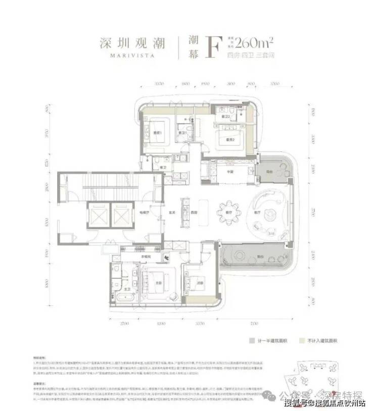 260㎡4房4卫,2梯2户,总价约4000万(单价约15.3万/㎡)