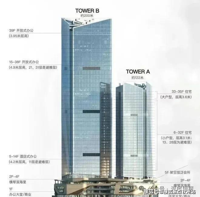 项目产品:楼高 122 米,共 35 层:裙楼商业( 1-4 层);架空层泛会所(5 层)