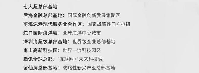 七大全球总部基地,激荡全球资本的湾区超核,由总部经济带串联,吸引大批诸如腾讯、大疆、阿里巴巴等行业龙头企业,以及大批总部企业入驻,未来将吸引260万人才聚集。