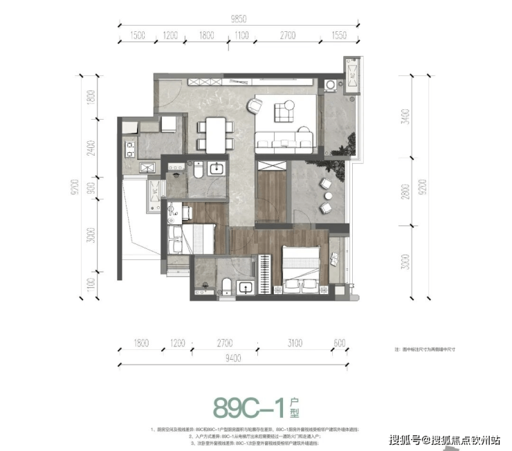 一期89㎡3房2卫,折后总价330-366万/套,单价3.7-4.11万/㎡。