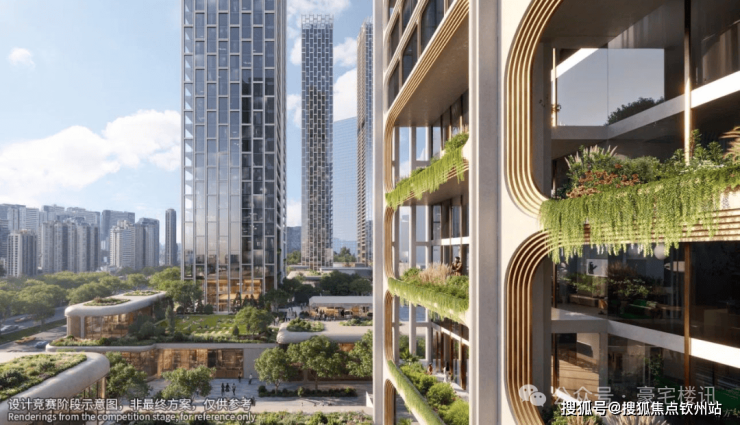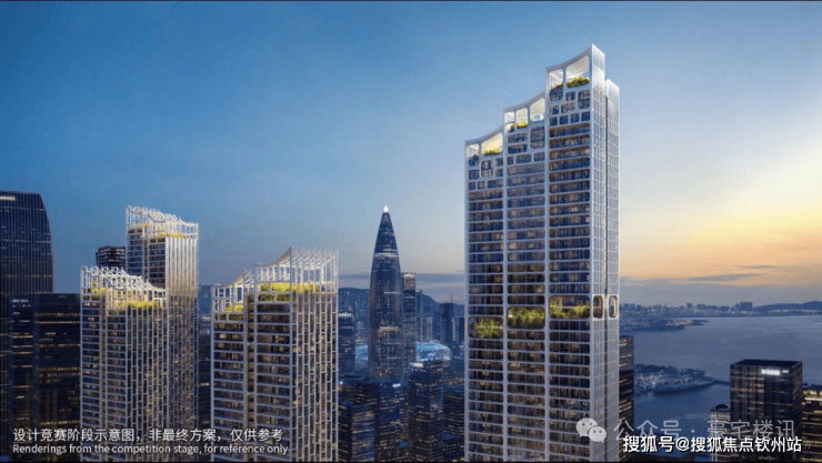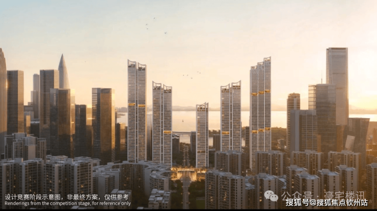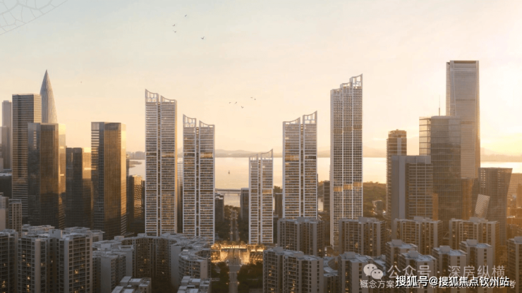 建筑规划:5栋超高层塔楼(4栋住宅+1栋公寓),高度分别为150米、200米、200米、240米(住宅)及250米(公寓)