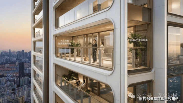 超高层观景面采用落地玻璃,深圳湾视野开阔,无需阳台即可观赏海景。