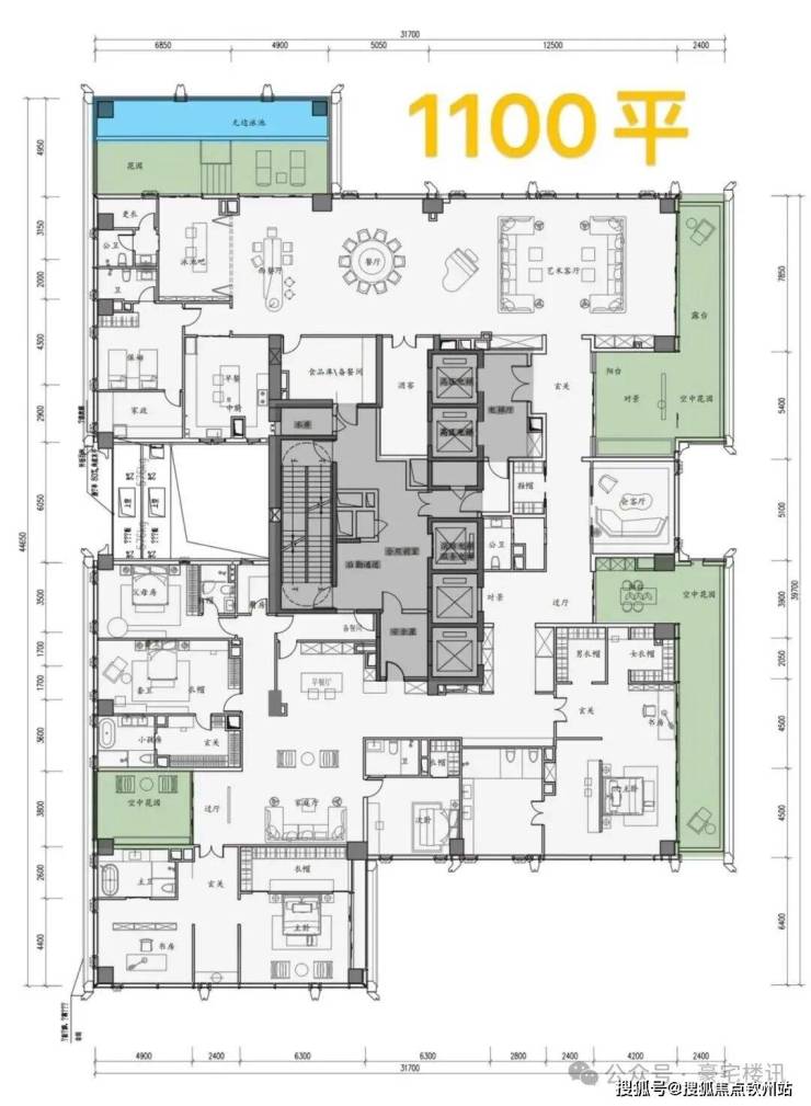 顶楼:约1050㎡整层大平层(仅3套)。