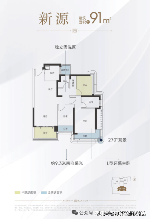 91㎡三房两厅两卫:南向设计,摩天轮景观尽收眼底,共有50套。