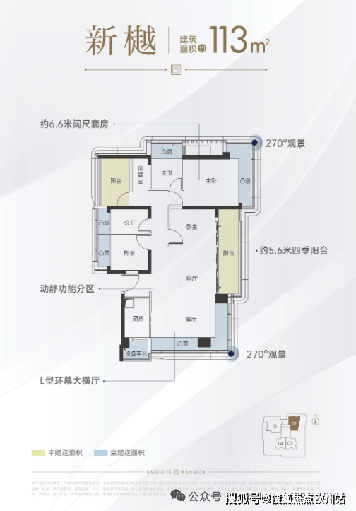 113㎡4房2卫,折后单价约5.8万/㎡起,折后总价约660万起