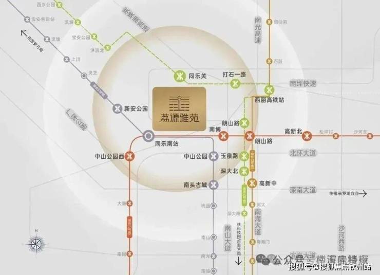 同乐公馆,位于深圳南山区南头街道同乐社区中山园路229号,地处南山区与宝安区交界处,毗邻中山园路与南坪快速交汇处北侧。项目占据"南山科创芯"核心位置,是深圳湾-科技园-西丽科创中轴的关键节点,直线距离仅3公里范围内覆盖科技园、前海自贸区及留仙洞总部基地三大产业核心区。西丽高铁新城(在建中,预计2028年投入使用)的规划进一步提升了区位价值,该枢纽将形成"4高铁+2城际+4地铁"的超级换乘网络,规模超过深圳北站,成为全国最大的轨道交通换乘站之一。