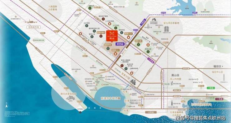项目为“双地铁物业”,距离5号线与12号线换乘站灵芝站仅约200-400米,2站直达宝安中心,5站至前海湾站,12号线串联南山、蛇口等核心区。