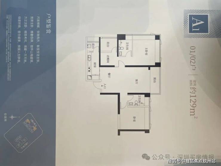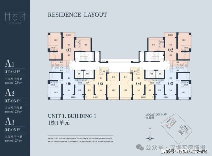 【124㎡的3+1房2厅2卫】1栋户型,竖厅格局,LDKB一体化设计,动静分区,主卧套间设计,还有一个多功能间可以做书房,U型厨房,公卫三段式分离,得房率:72.07%(不含赠送);