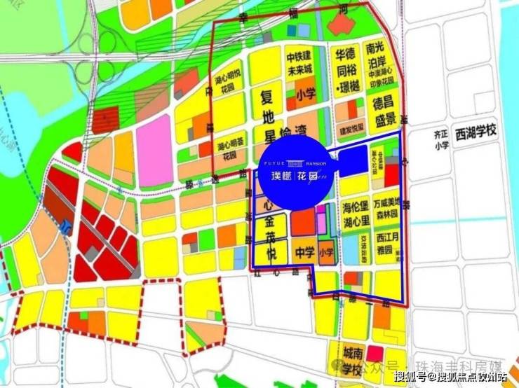 【项目位置】斗门西部中心城A片区湖心新城白藤七路与锦湖路交汇处