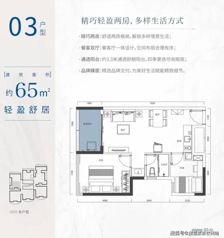 户型:57-114㎡二至三房山海高层