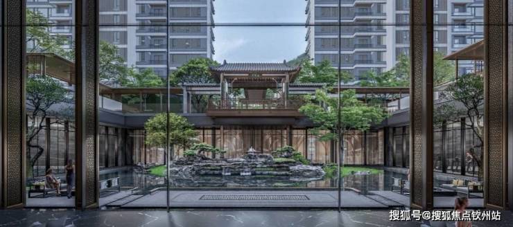 而社区内部,则采用正方新岭南风格园林,参考汲取岭南四大名园精华,打造“两轴三庭,五进六园”景观布局。